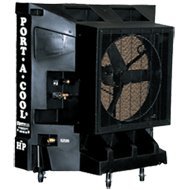 Port-A-Cool portable evaporative cooling unit utilizes a unique, patented housing design and high efficiency rigid cooling media to produce effective and efficient cooling even in high relative humidity conditions. U.S.A. Cooling Capacity (sq. ft.): 1,800, Water Reservoir (gal.): 14, Air Delivery (CFM): 6,700, Speeds (qty.): Variable, Fan Diameter (in.): 24, HP: 1/3 (Motor) 1/6 (Pump), Amps: 4.5 (Motor) 5 (Pump), Volts: 115, Cooling Temperature (deg.): Up to 20, Garden Hose Attachment: Yes, Dimensions W x D x H (in.): 50 x 25 x 53